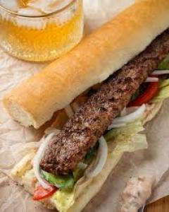 (کوبیده۱۵۰گرمی ، ترکیب گوشت گوسفند و گوساله) دورچین(لیمو، پیاز ،فلفل.گوجه)