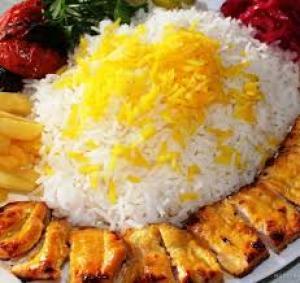 (جوجه زعفرانی + راسته گوساله، برنج ایرانی درجه ۱) دورچین : (لیمو، پیاز ،فلفل.گوجه)