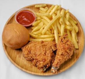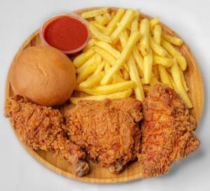 از ساعت 7 عصر/2تکه ران،1 تکه سینه،دورچین:سیب زمینی،نان بروتچن،سس مخصوص