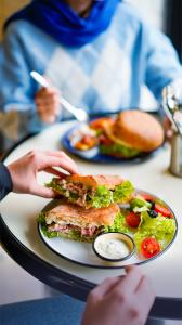 بیکن _ سس قارچ _ کاهو فرانسه _ سس مخصوص _ نان چاباتا _ ساید سالاد