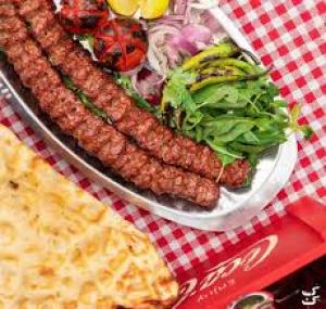 ۴سیخ کباب 130گرمی به همراه(گوجه، نان،دورچین و بسته بندی)