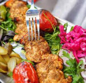 ۱۰سیخ کوبیده ۱30گرمی به همراه(نان،دورچین،گوجه و بسته بندی)