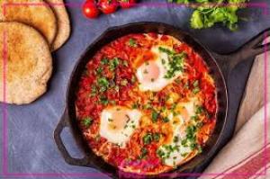 دو عدد تخم مرغ،رب،قارچ،فلفل دلمه، پنیر پیتزا،۳تکه نان بربری یا سنگک،دورچین،فلفل تند