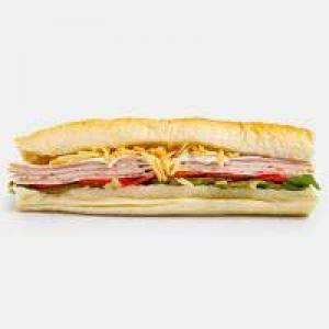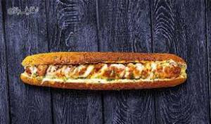 نان باگت ژامبون گوشت و مرغ, سیب زمینی خلالی گوجه خیارشور کاهو یک عدد سس