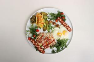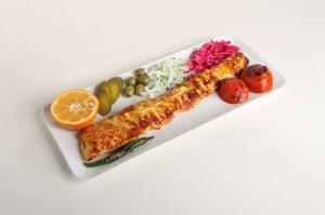 300 گرم سینه مرغ،450 گرم برنج ایرانی،زیتون،گوجه کبابی،فلفل کبابی،لیمو،خیار شور