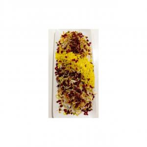 250 گرم گوشت گوسفندی و گوساله،50 گرم سینه مرغ،دورچین گوجه لیمو فلفل کبابی ترشی ، 450 گرم برنج ایرانی،ته چین