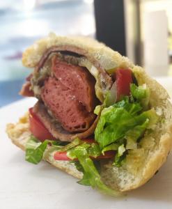 دونر کباب ترکی گوشت و مرغ+سس مخصوص+2عدد باگت فرانسوی+گوجه+خیار شور+کاهو