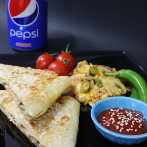 سیب زمینی+گوشت چرخ کرده طعم دار شده+قارچ+پنیر پیتزا+چیپس+فلفل دلمه