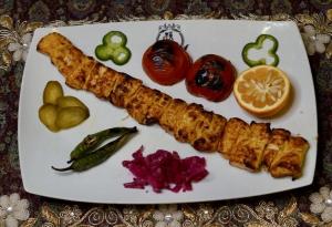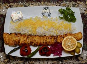 ١ سيخ 270گرم فيله مرغ + برنج ايراني به همراه دورچين
