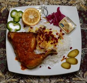 ٣٠٠ گرم خورشت +١٢٠ گرم گرشت مغز ران گوساله +برنج ايراني