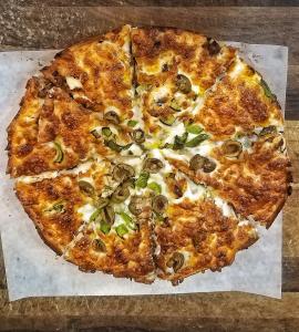 قارچ، فلفل دلمه، پیاز، گوجه فرنگی، ذرت، پنیر