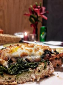اسفناج خرد شده، فیله مرغ مزه دار شده، سیر، پنیر پارمزان