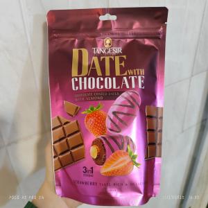 خرما شکلاتی طعم توت فرنگی با مغز بادام