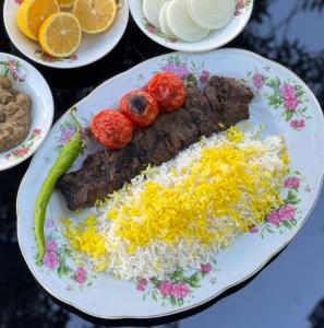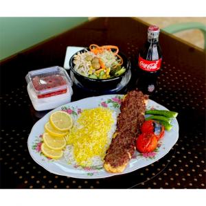 100 گرم جوجه 100 گرم چنجه 100 گرم کوبیده به همراه برنج ایرانی