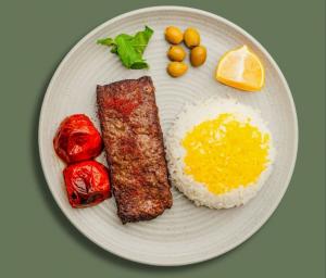 (کالری 468) فیله گوساله گریل + سبزیجات میکس مزه دار شده + 250 گرم پوره یا سیب زمینی تنوری+ نان جو