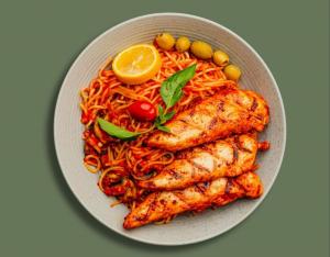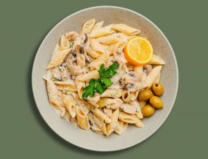 (کالری 950) اسپاگتی پنه +130 گرم فیله مرغ + قارچ + شیر کم چرب + دورچین سبزیجات (در توضیحات ذکر شود رژیمی یا معمولی)