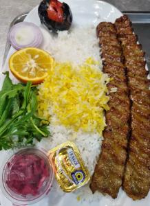 دو سیخ کباب آدانا 140گرمی همراه با 400گرم برنج ایرانی