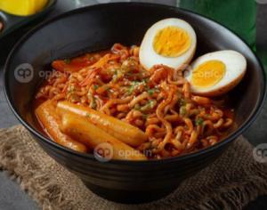 توفو ،رامن یا نودل ،سوسیس، کیمچی،سبزیجات ، لوبیا سویا ،رب فلفل کره ای وسس ها