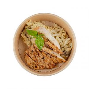 سس ریحون ایتالیایی - سینه مرغ -پسته - بادوم هندی - پنیر موزارلا - پنیر پارمسان (انتخاب پروتئین از تاپینگ)