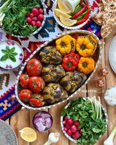۸ عدد دلمه برگ مو ، دو عدد فلفل دلمه ، دو عدددلمه گوجه ، دو عدد دلمه بادمجون، مختص ۴ نفر