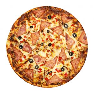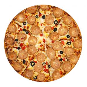 33 سانتی شامل خمیر پیتزا ، سس مارینارا ، ژامبون گوشت ۹۰ ، ژامبون مرغ ۹۰، هات داگ پنیری ۸۰ ، پنیر پیتزا ، قارچ ، فلفل دلمه ، زیتون
