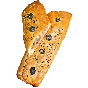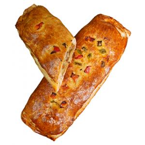 شامل خمیر پیتزا ، سس سیر ، زبان گوساله ، پنیر پیتزا قارچ فلفل دلمه زیتون
