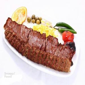 یک سیخ کباب کوبیده گوشت گوساله 120 گرمی.یک سیخ کباب برگ گوشت فیله گوساله 250 گرمی و 400 گرم برنج 100% ایرانی