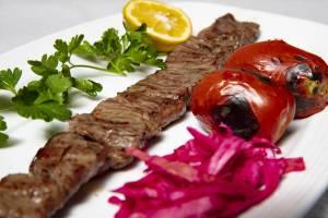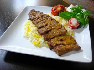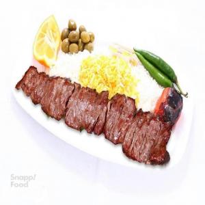 یک سیخ کباب برگ فیله گوساله مزه دار شده با ماست خامه 250 گرمی.400 گرم برنج 100% ایرانی