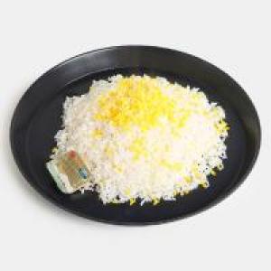 ۲۵۰ گرم ران مرغ سرخ شده،۳۰۰ گرم زرشک پلو با برنج ایرانی،تزئین شده با برنج زعفرانی و زرشک