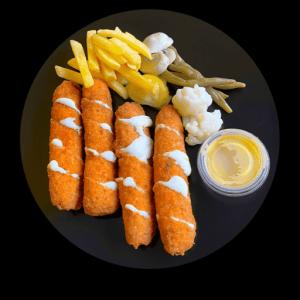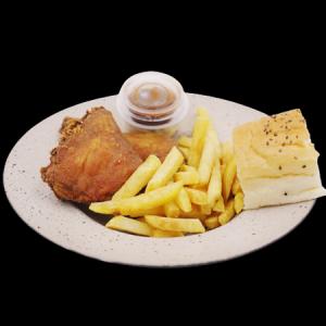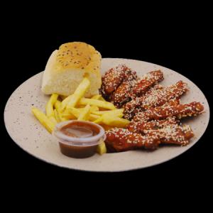 350 گرم فیله مرغ سوخاری،200 گرم سیب زمینی ، سس مخصوص