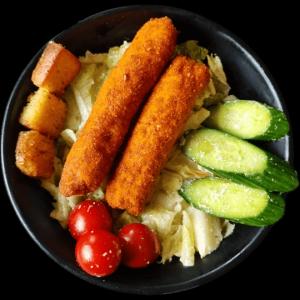 کاهوگوجه خیار فیله رول سوخاری پنیری نان تست سس سزار پنیرپارمسان