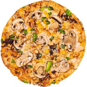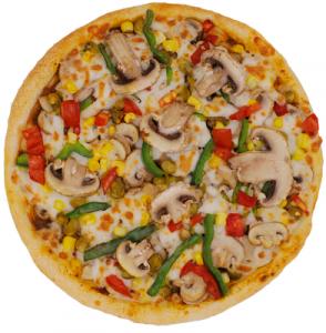ذرت، نخود فرنگی، پنیر موزارلا وپارمسان، مرینار سس، فلفل دلمه، گوجه، قارچ،
