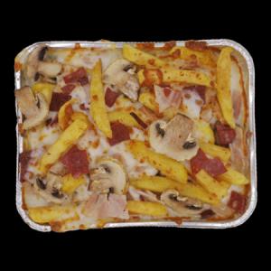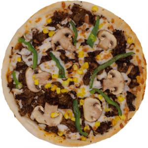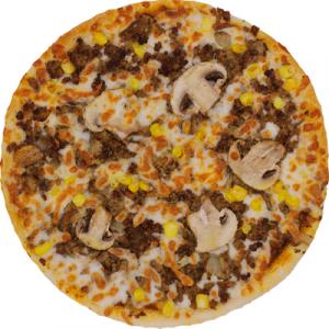 گوشت چرخ کرده عمل آوری شده، پنیر موزارلا و پارمسان، مرینار سس، ذرت، قارچ،