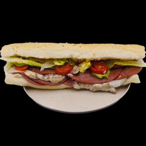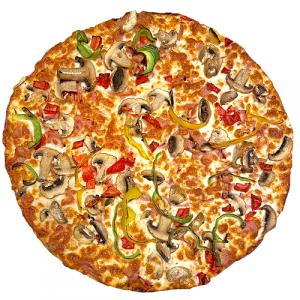 ژامبون گوشت، ژامبون مرغ، پنیرموزارلا و پارمسان، مرینار سس، فلفل دلمه، گوجه، قارچ،