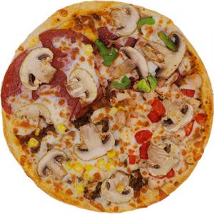 شامل 4 نوع پیتزا : پیتزا مخصوص، پپرونی، مرغ و قارچ، گوشت و قارچ