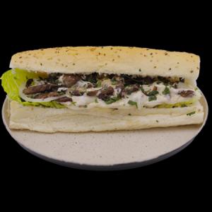 فیله استیک، پنیر، پیاز، قارچ، فلفل دلمه، سس مرینارا، روغن سیر