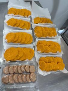 از کالباس خانگی ۵۰ درصد ،سس سفید ،پنیر ورقه ایی ،نان تست پروتئینی وبرای بافت خارجی از پودر پانکو
