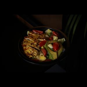 ميکس سبزيجات-مرغ گريل-پنير موزرلا-سس مخصوص(عسل خردل)-اواکادو-گوجه گيلاسي