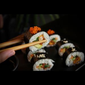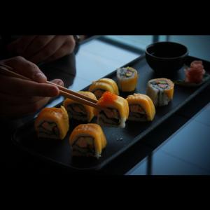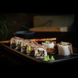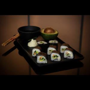 سالمون دودي-کرب-اواکادو-خيار-هويج-فلفل دلمه اي