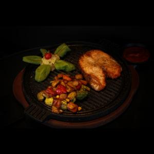 300گرم سينه مرغ گريل-پوره سيب زميني-سس قارچ-سبزيجاته ساته شده