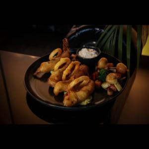 شاه ميگو-سبزيجاته ساته شده-سيب زميني-سس تارتار