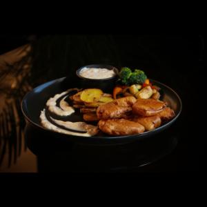 250گرم فيله گوساله-سس قارچ-پوره سيب زميني-سبزيجاته ساته شده