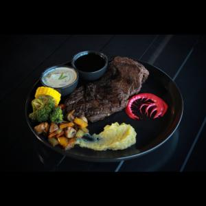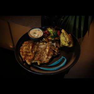 400گرم ريباي استيک-سس ترياکي-سيب زميني تنوري-سبزيجاته ساته شده
