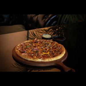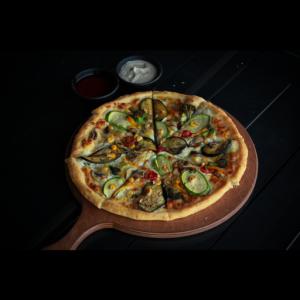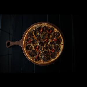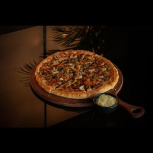 راسته گوساله-سينه مرغ-سس پستو-سس قارچ-قارچ-زيتون-گوجه گيلاسي