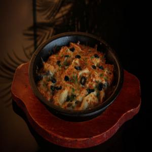 بادمجان گوشت چرخ شده پنير روغن سير زيتون سياه دلمه قارچ