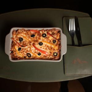 ماکاراني گوشت چرخ شده پنير پياز دلمه قارچ زيتون پنير