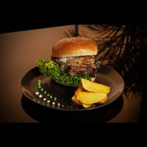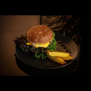 برگر 200گرم-سس مخصوص-پنير گودا-کاهو-گوجه-خيارشور