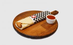2 عدد فیله سوخاری+ پنیرپیتزا+کاهو+گوجه+سس مخصوص.پیچیده شده در نان تورتیلا