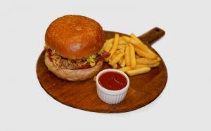 سینه مرغ+کاهو+گوجه+بیکن گوشت+پنیرگودا