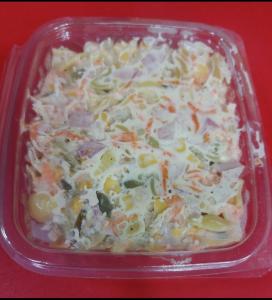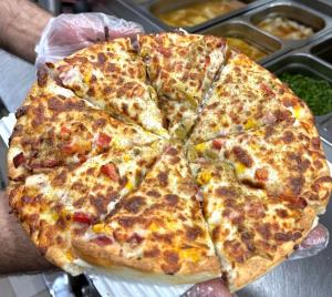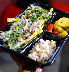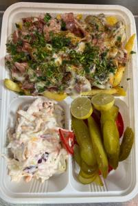 سیب زمینی سرخ شده فرنچ با پنیر پیتزا و ژامبون و قارچ سرخ شده با دورچین سالاد کلم و لیمو و.... بصورت پک کامل مناسب برای یک نفر